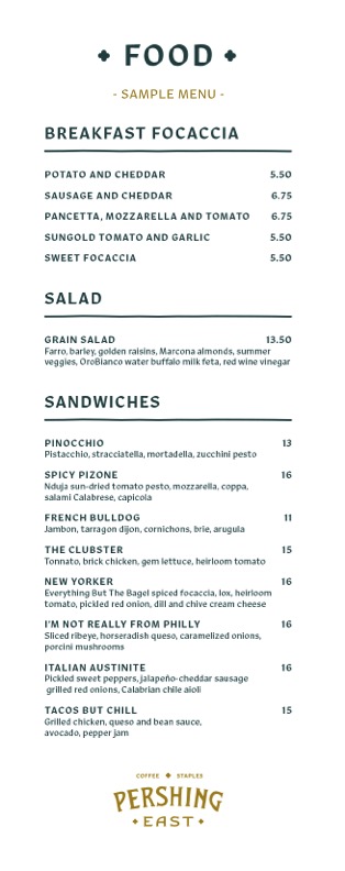 But that's not all; the breakfast tacos, highly recommended by loyal patrons, feature perfectly seasoned potatoes that have garnered rave reviews. Pershing East also houses an enticing selection of fresh pastries and breads, making it an ideal spot to savor a light bite alongside your favorite brew.